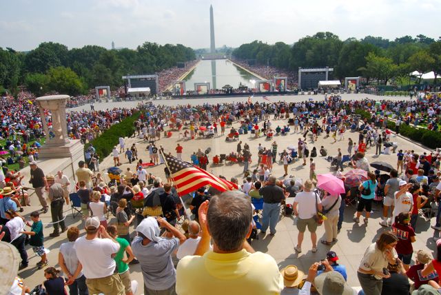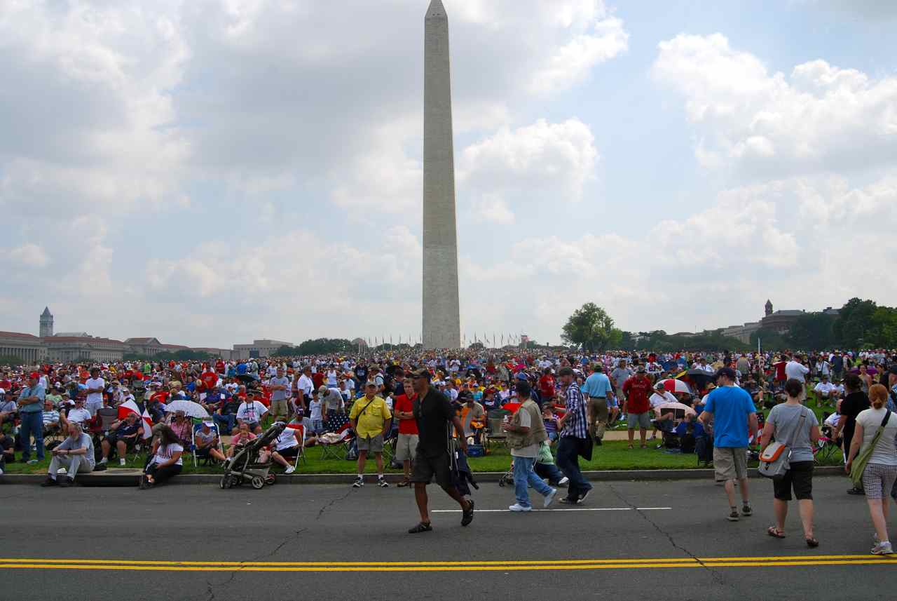The crowd on the lawn in front of the Washington Monument
