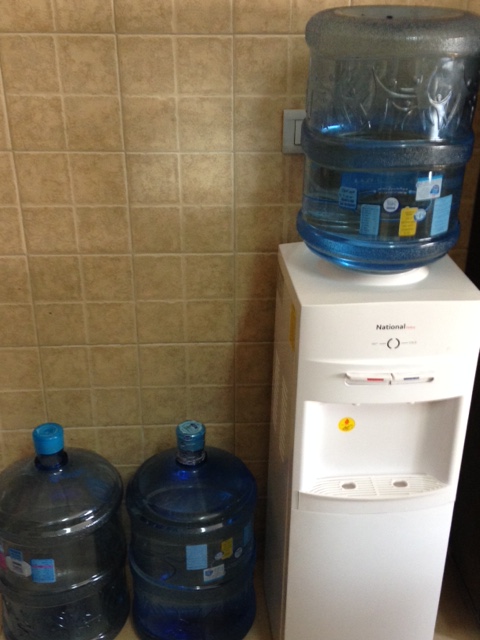 Our source of drinking water–our kitchen water cooler.